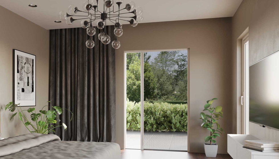 Integrado en la estructura de la ventana para lograr una estética minimalista y mejorar el aislamiento térmico y acústico.